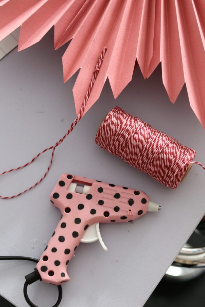 Jag har använt återvunnet papper, så kallat sugerpaper, som är 100 gram och enligt mig perfekt tjocklek för att vika. Det blir lite mer stadga än vanligt skrivarpapper som är på 80 gram även om det också funkar. Man kan även testa att prova tjockare papper och tapet även om det då kan vara lite svårare att få till snygga vik. Ljusslingan jag använt är en variant med små batterier som går att sticka in mellan lagren med 12 lampor på en liten ståltråd. Limstift, limpistol och snöre. Pensla spetsarna med glitterlack om du vill ha lite extra glimmer.
