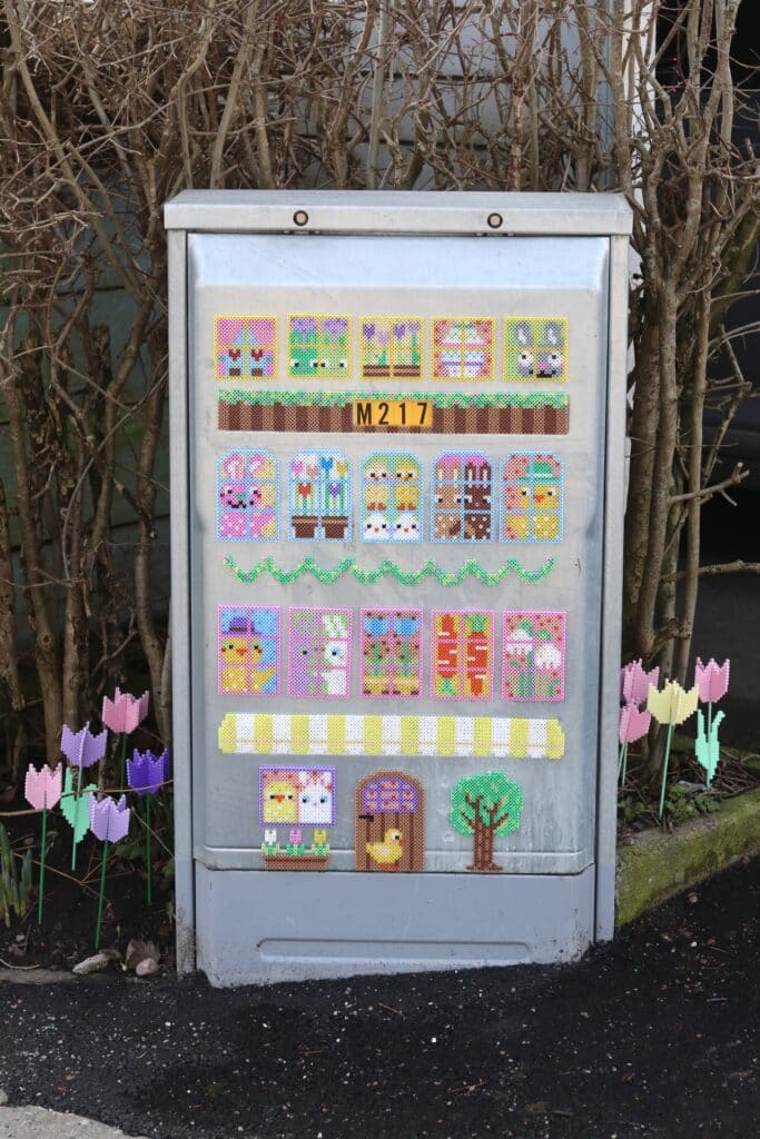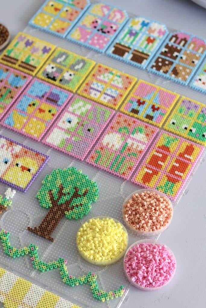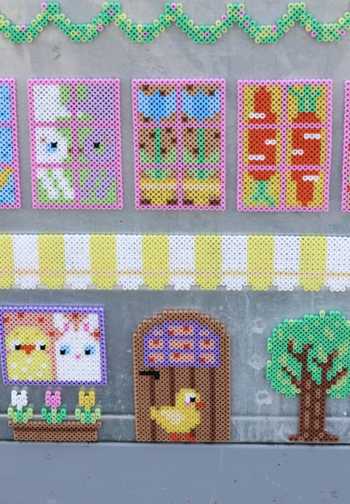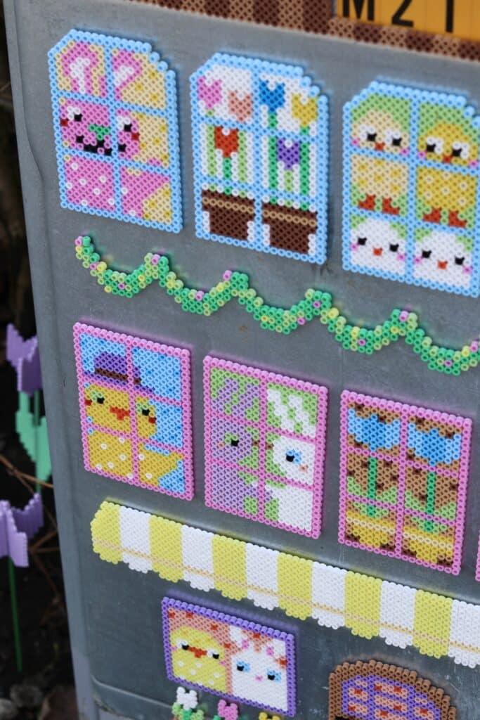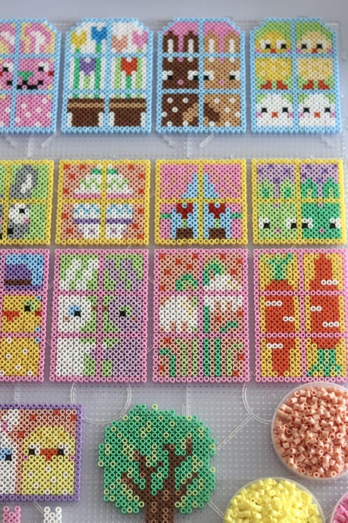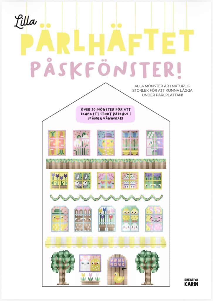 Ett häfte med massor av fönster fyllda med påskiga motiv som kycklingar, kaniner, tulpaner, ägg, morötter och andra roliga motiv. Räcker till många där man kan pärla tillsammans och skapa varsitt fönster!