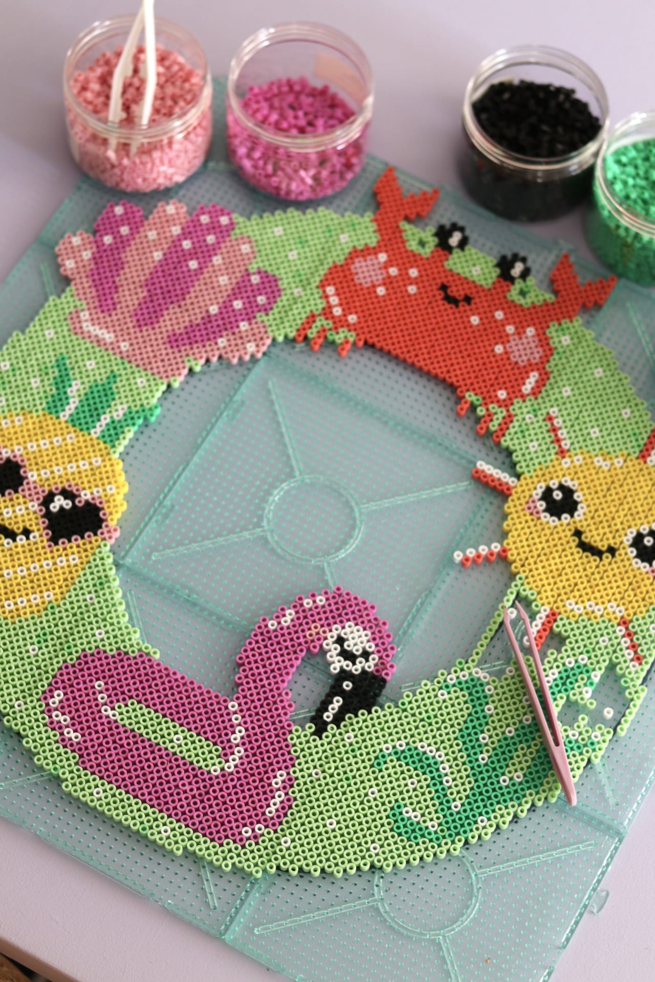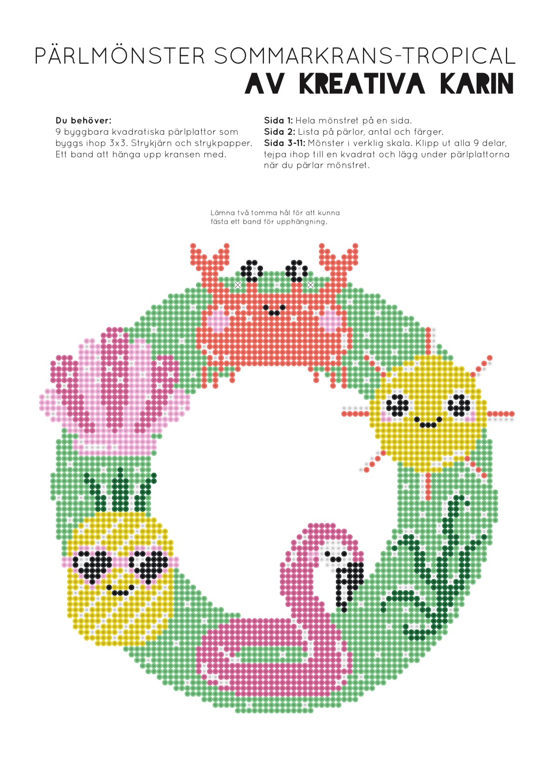 Kransen byggs på hela nio pärlplattor och blir ett imponerande blickfång till ytterdörren, altanen eller sommarstugan. Varje detalj är noggrant designad för att fånga känslan av sol, bad och äventyr. Perfekt projekt för dig som vill pyssla fram sommarstämning och ett färgsprakande välkomnande till dina gäster.