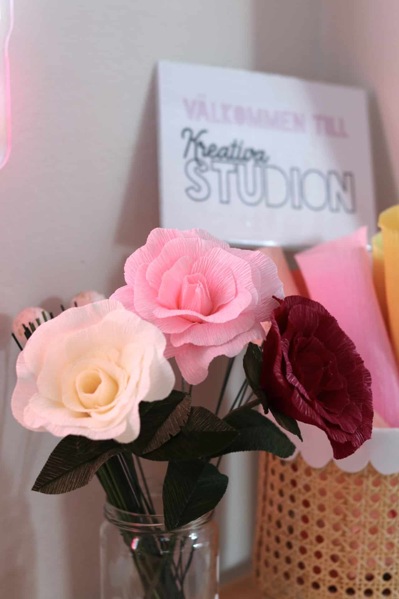 Skapa vackra och hållbara rosor i crepepapper! I denna DIY-beskrivning guidar jag dig steg för steg genom processen och du kan skapa rosor till en hel bukett att ställa i en vas.