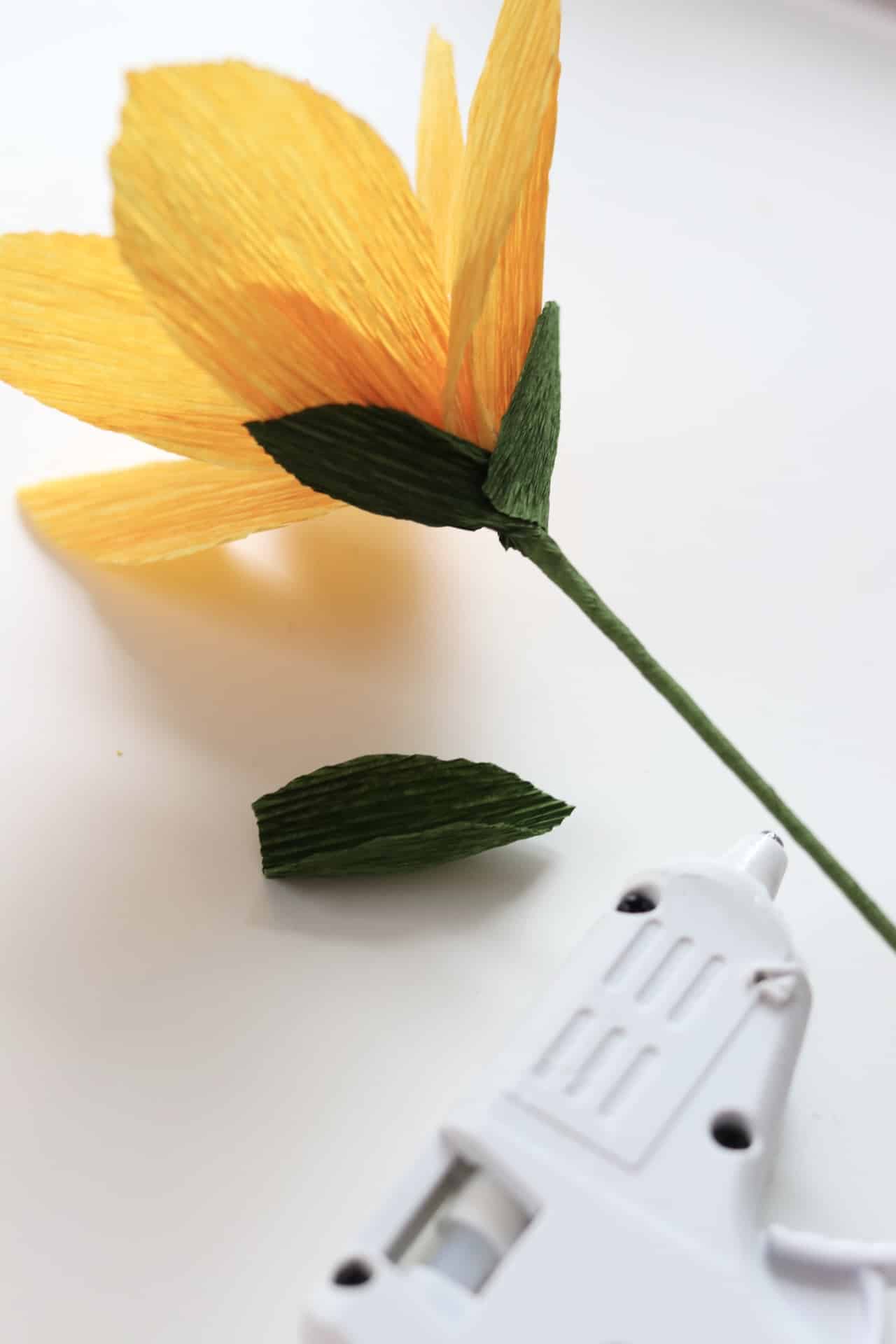 Du behöver: Crepepapper, tjocka blompinnar, tunna blompinnar, sax, limpistol, kruka och stickmassa.